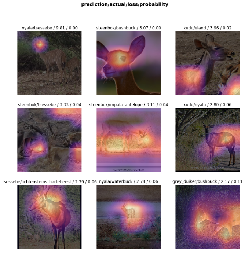The interpreter also has a very useful feature that allows us to easily plot the the examples that had the largest loss values.